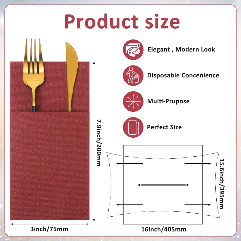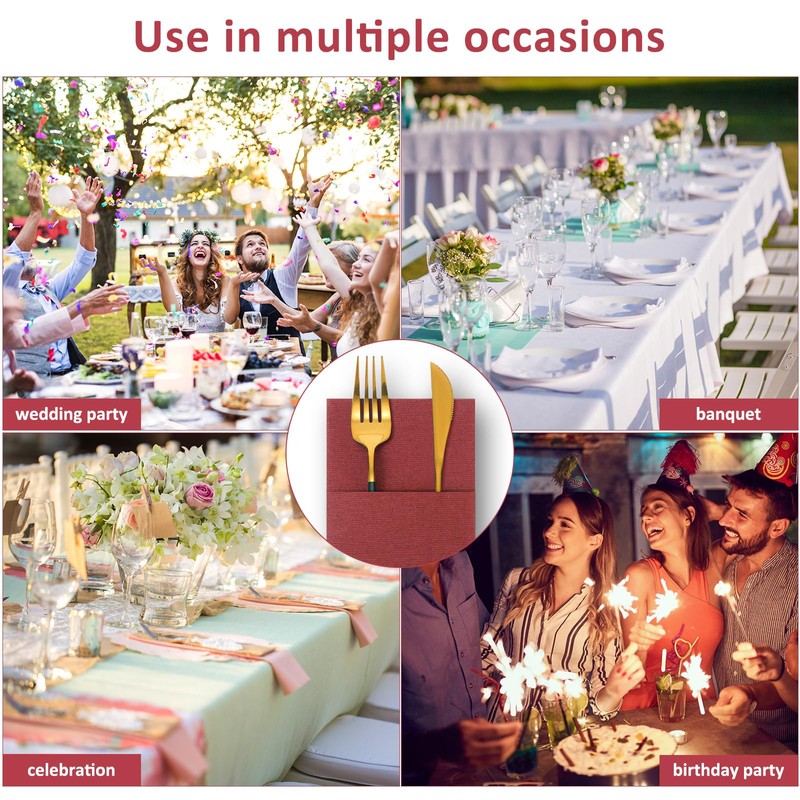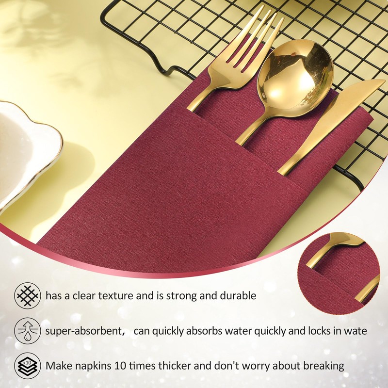 - Wide Range of Uses: these paper dinner napkins have a variety of functions, they can be applied as flatware pockets, disposable napkins, etc., and they can also be applied for party activities, such as birthday parties, celebrations, wedding buffets, Thanksgiving and Christmas dinners, meals, barbecue and other dinner activities