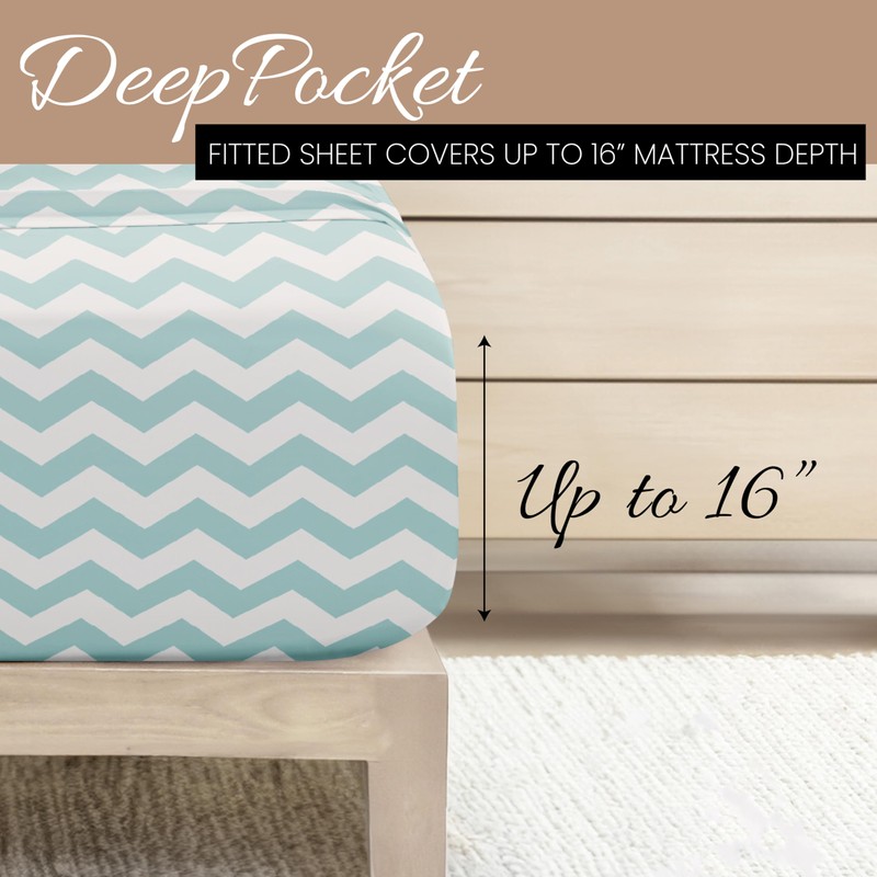 - EASY SHEET CHANGES: Changing sheets on deep beds is frustrating, but not with our 16” deep pocket sheets. Our snug-fit design allows for you to easily put your fitted sheets on without the hassle of wrestling down every corner. This set includes a fitted and flat sheet, and two pillowcases.