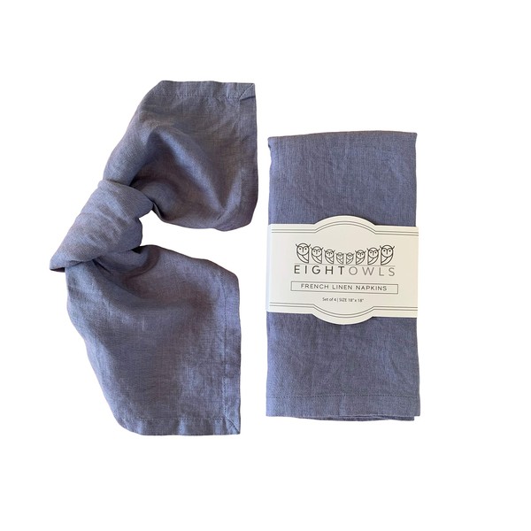 • Quality craftmanship, created from pure french flax in a set of 4 size 18 X 18 Inch. The stitching is perfectly matched to the same color as each napkin and the texture of the fabric feels very soft against your skin
