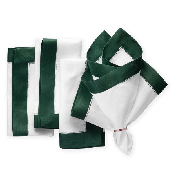 - Linen dinner napkins cloth woven of 100% natural French flax linen. White linen at the centre and a line of classic hemstitch contrasted with beautiful colored borders that bring an air of charm to your dining table. Perfectly suited for spring, summer, fall, winter and special occasions, holidays, parties, weddings or casual dinners at home