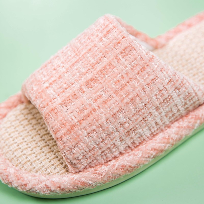 Linen Open Toe Slippers, Soft and Silent Home Slippers for Couples, Casual Comfortable Breathable non-slip Indoor and Outdoor Slippers Men/Women Pink EU 37-38