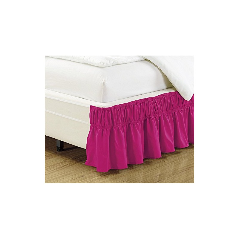 Linen Plus Elastic Bed Skirt 14" Drop Easy On/Easy Off Dust Ruffled Solid New (Hot Pink, Queen-King)