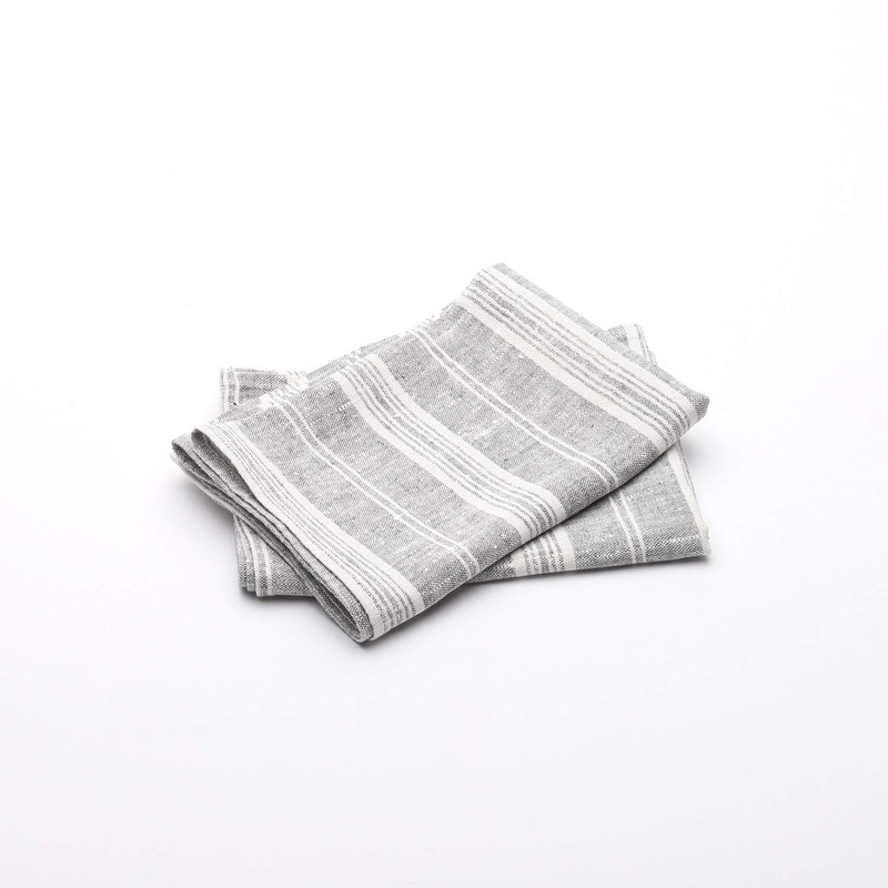LinenMe Set of 2 Hand Towels Graphite Multi Striped Linen, 100% linen, Prewashed, Super Absorbent, Sustainable, Made in Europe