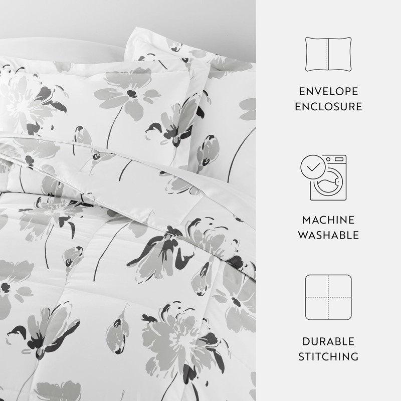 LINENS & HUTCH Comforter Set Patterned Microfiber All Season Down-Alternative Ultra Soft Bedding in Magnolia - King/Cal-King Magnolia Light Gray