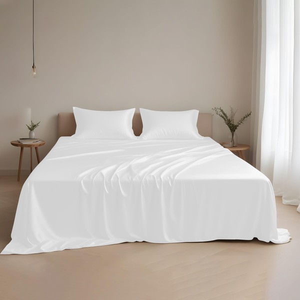 Linenwalas Eucalyptus Tencel Sheets Set Full Size, Cooling, Breathable & Silky Soft Lyocell Bedding Set - 1 Fitted Sheet 1 Flat Sheet and 2 Pillowcases (Full/White)