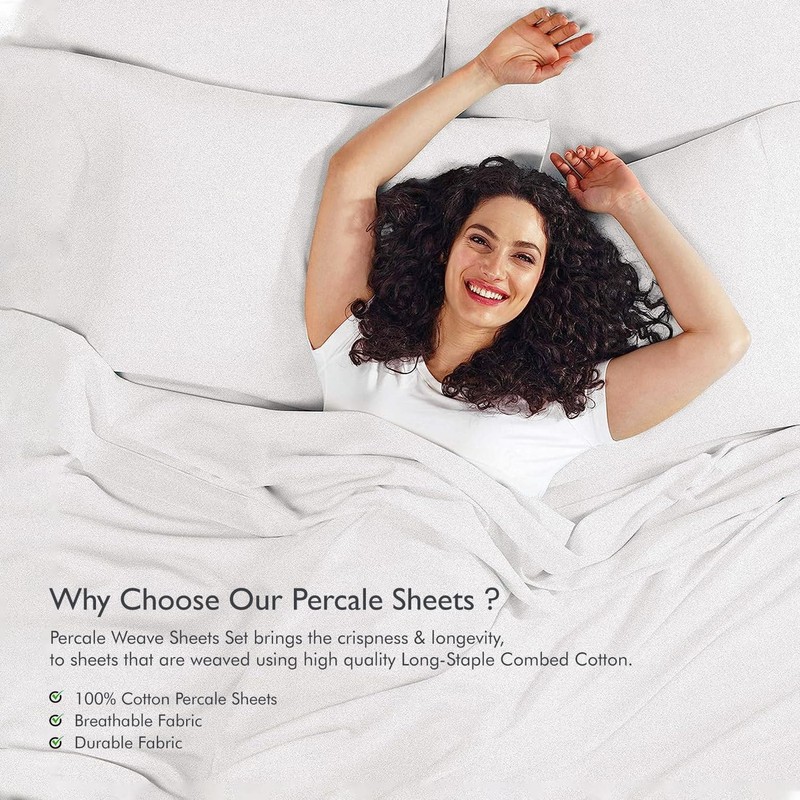 - 100% COTTON FLAT SHEET: 100% Cotton Percale Weave single flat sheet brings the crispiness and longevity that is comparable to prestigious hotel. The sheets are weaved using high quality Long-Staple Combed Cotton yarns in India, to make it the valued crispy percale 200 TC sheets in the industry. Varied colors to match your solid or printed duvet, quilt or comforter set in white, ivory, avocado green, light grey, bahamas blue