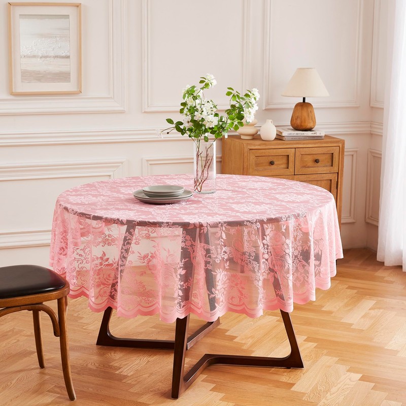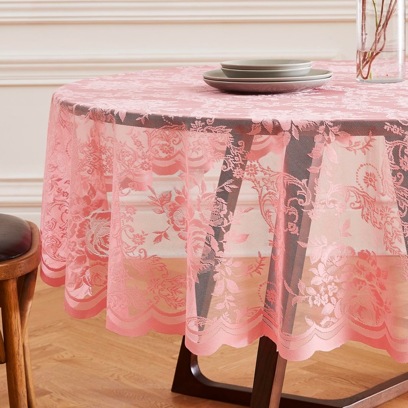 LinenZone Beautiful Round Lace Tablecloth with Elegant Scalloped Bottom for Any Special Event Such as Wedding, Birthday Party, Baby Shower, Anniversary. Sits 4 to 6 People. (Luna TC 36 Round, Rose)