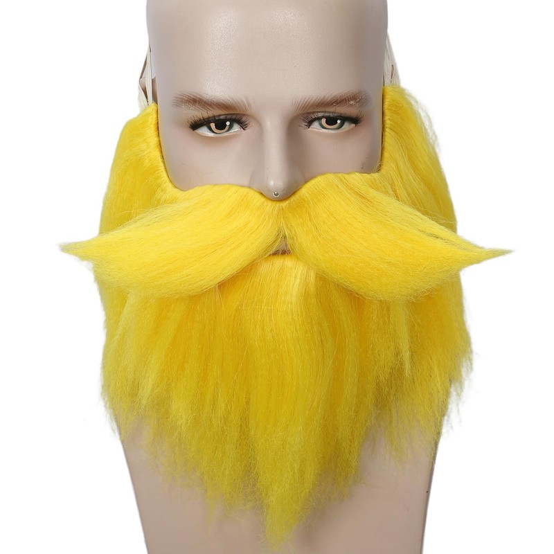 Linfairy Men's Synthetic Fiber Fake Beards Suitable for Adult Wizard Costumes and Halloween Role Play Parties (Yellow)