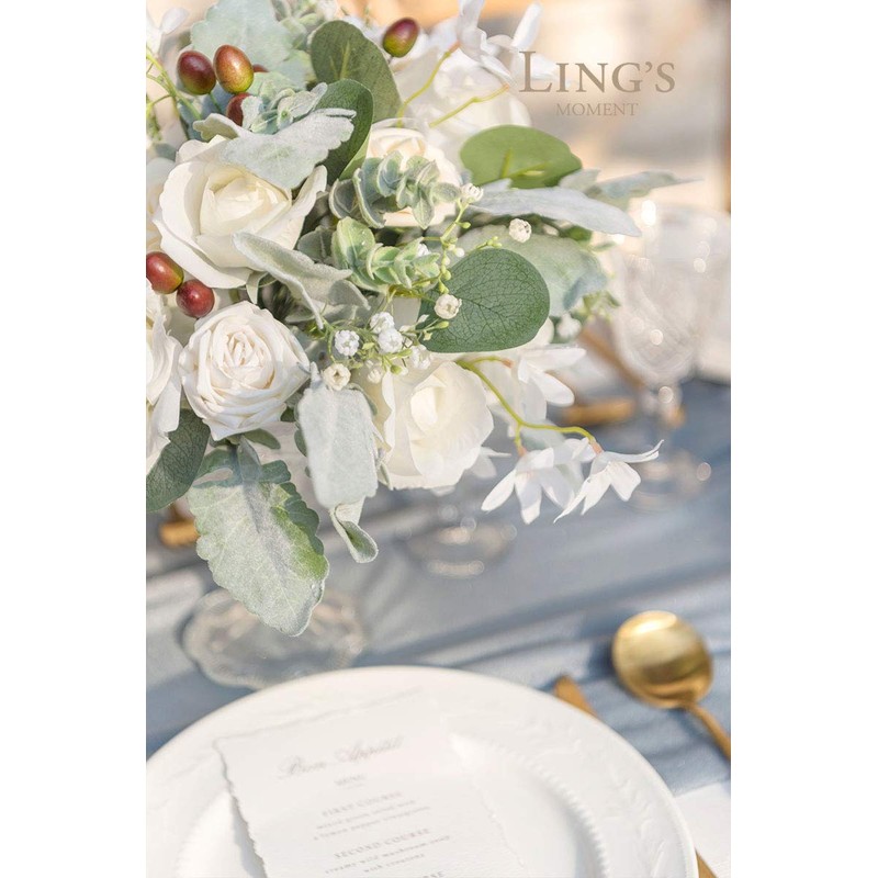 - What You Get: The cost-effective package included medium dusty miller leaves(4") x13, small dusty miller leaves(3") x15, dusty baby eucalyptus leaves x15, true blue eucalyptus leaves x23, baby breath x20, white oncidium flowers x12.