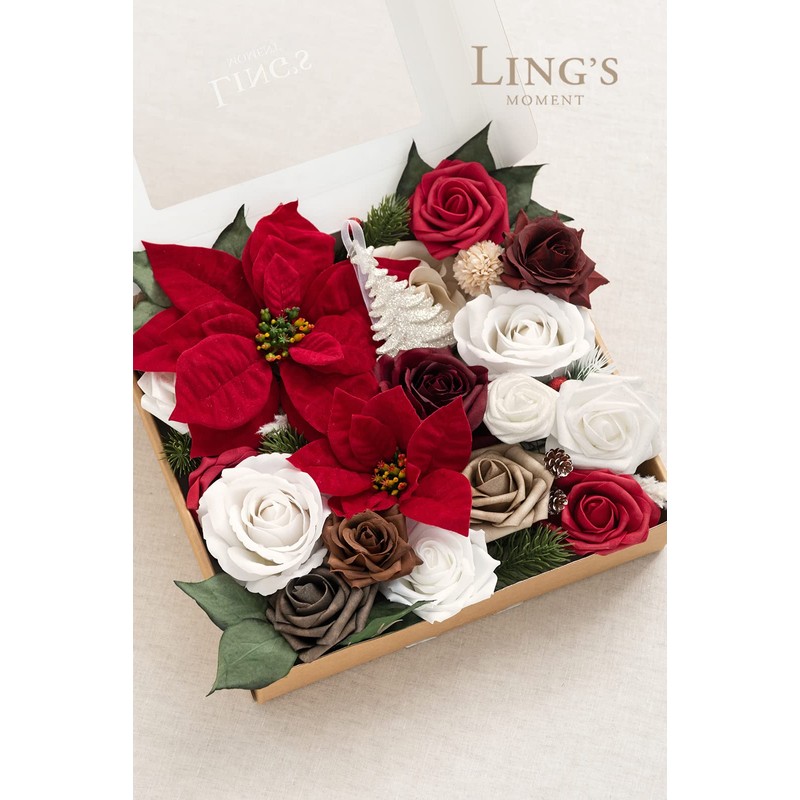 Ling's Moment Christmas Flowers Artificial, Red Poinsettias Artificial Christmas Flowers and Greenery Grand Combo for DIY Wedding Bridal Bouquet, Centerpieces, Home, Floral Arrangement Decor, etc.