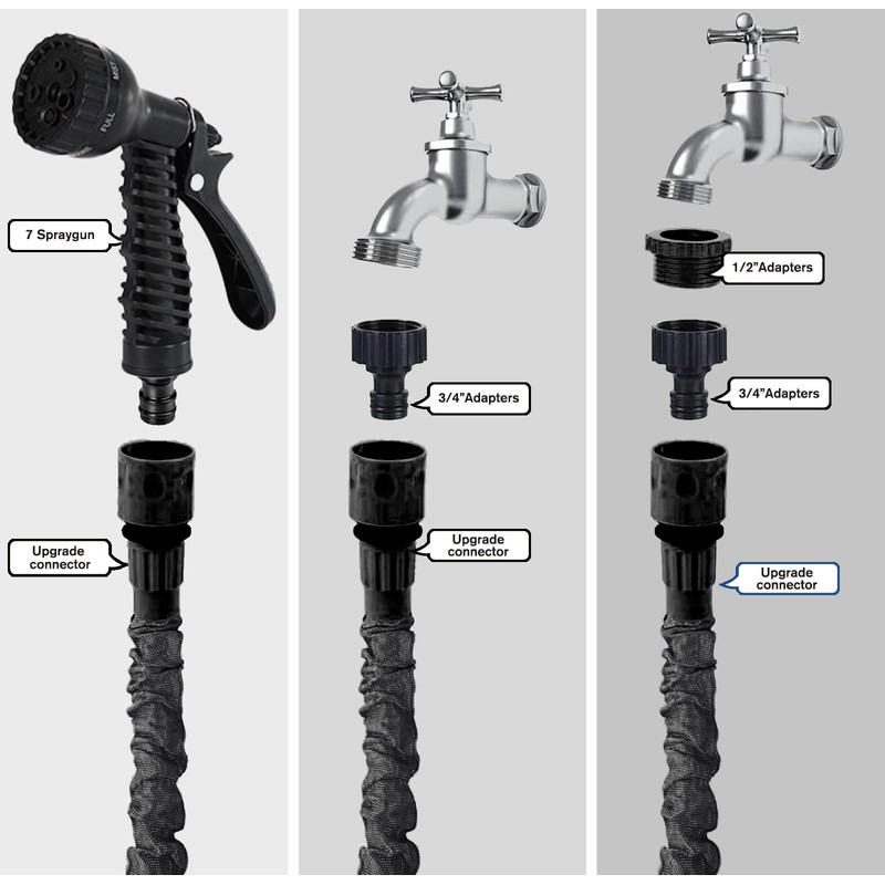 - ??Was Sie Bekommen??Dieser Gartenschlauch enth?lt alles f??r effiziente Gartenbew?sserung: einen hochwertigen Schlauch, eine 7-in-1 Spr??hbrause, einen Bedienungsanleitung, drei Ersatzdichtungen, Teflonband f??r zus?tzliche Dichtigkeit, einen Schlauchhalter, 1/2- und 3/4-Zoll-Adapter. Mit diesem umfassenden Set sind Sie bestens ausgestattet, um Ihren Garten optimal zu bew?ssern.