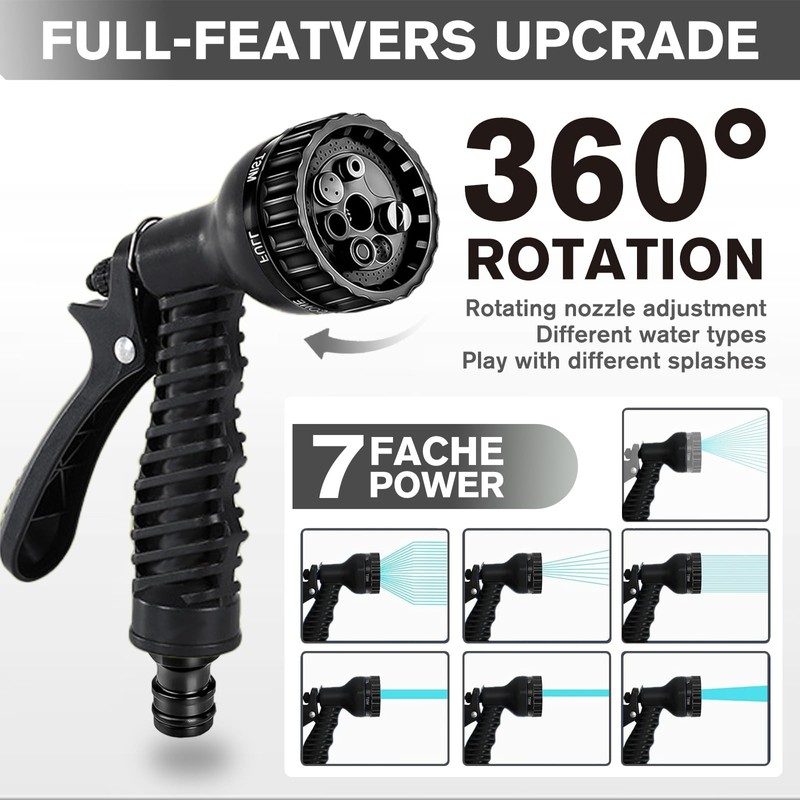 - ??7 Verstellbare Funktionsd??se??Erleben Sie maximale Flexibilit?t mit 7 einstellbaren Wasserstrahlmodi, die sich perfekt an Ihre Bed??rfnisse anpassen lassen. Der ergonomische Griff mit Fixierm?glichkeit erm?glicht eine automatische Bew?sserung, w?hrend der lange Schlauch uneingeschr?nkte Reichweite bietet. Der innovative Druckregler gew?hrleistet den optimalen Druck f??r schonende Bew?sserung, ohne Ihre Pflanzen zu besch?digen.