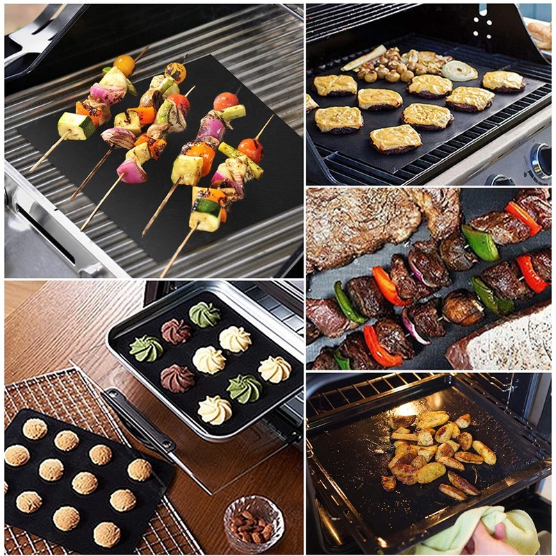 - 100% NON-STICK - 100% Non-Stick means you can grill without grease and mats are reusable for years! Non-stick BBQ grill mat prevent even the smallest morsels from falling through the grates. Keep your grill looking brand-new and no more clean-up of your dirty grill!