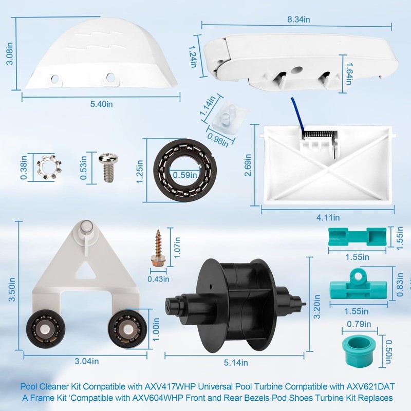 - 🔧 Complete OEM Fit for 7+ Pool Vacs​​ "Direct replacement for ​​AXV417WHP pods & AXV621DAT turbines​​. Compatible with ​​Hayward Navigator/Arneson/Pool Vac Plus/Ultra​​ – solves ​​broken swing arms​​ and ​​clogged turbine​​ issues."