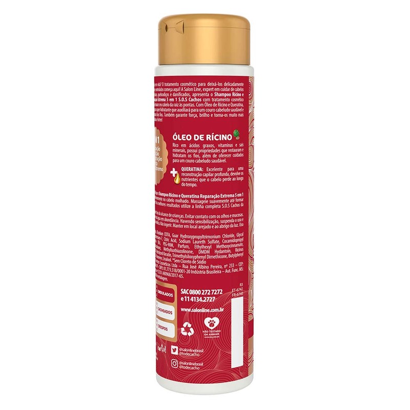 Linha Tratamento (SOS Cachos) Salon Line - Shampoo Ricino e Queratina - Reparacao Extrema 5 em 1-300 Ml - (SOS Curls - 5 in 1 Extreme Restoration Castor and Keratin Shampoo 10.14 Fl Oz)