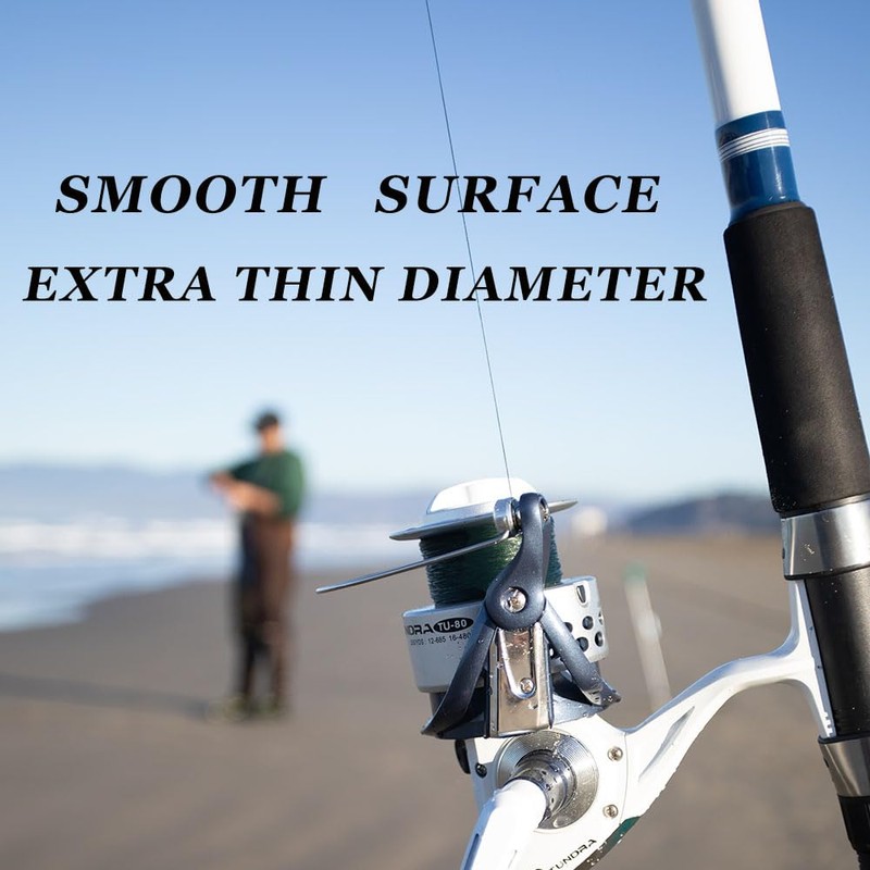 - 【Extra Thin Diameter】The green fishing line with extra thin diameter is in low visibility, more easily to cut the water to reach the target water layer to hook big ones.