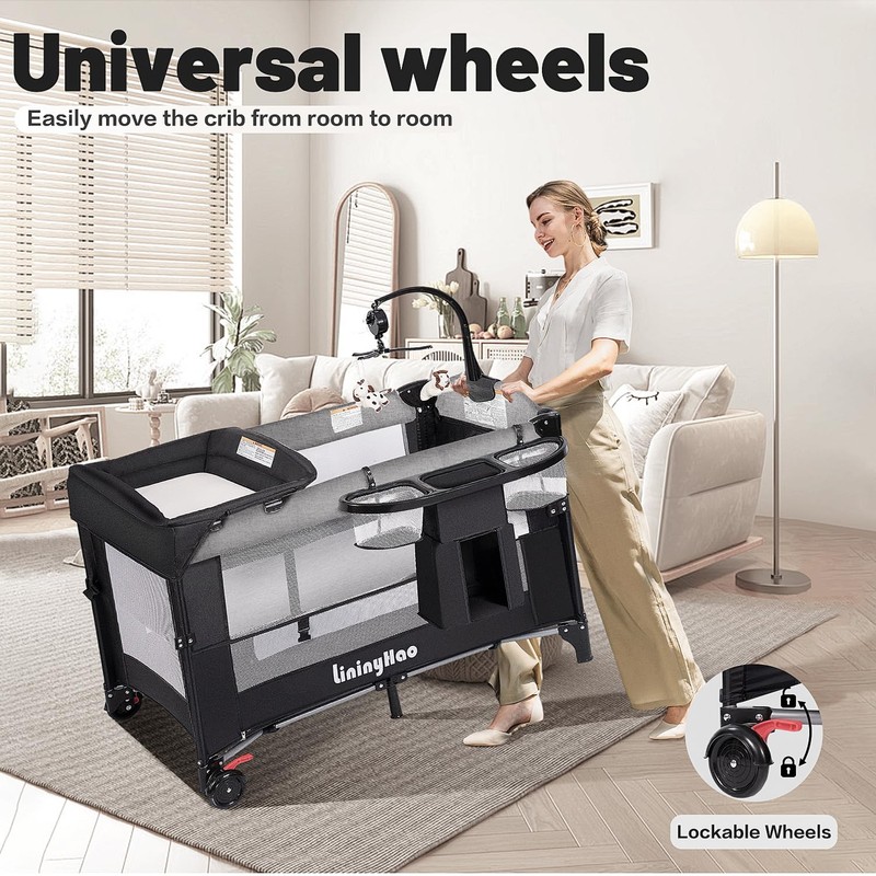 - 【Practicality】The lower level is designed to store miscellaneous items and features 2 openings for easy access and retrieval. It also includes a side-expandable storage bag. The entire unit can be quickly folded with a simple pull, saving space and enhancing portability. It comes equipped with a diaper changing station, and the upper bed can be detached to serve as a playpen. The side height is adjustable, allowing it to seamlessly connect with a parent's bed. Suitable for multiple scenarios, it creates a comfortable environment for the child.