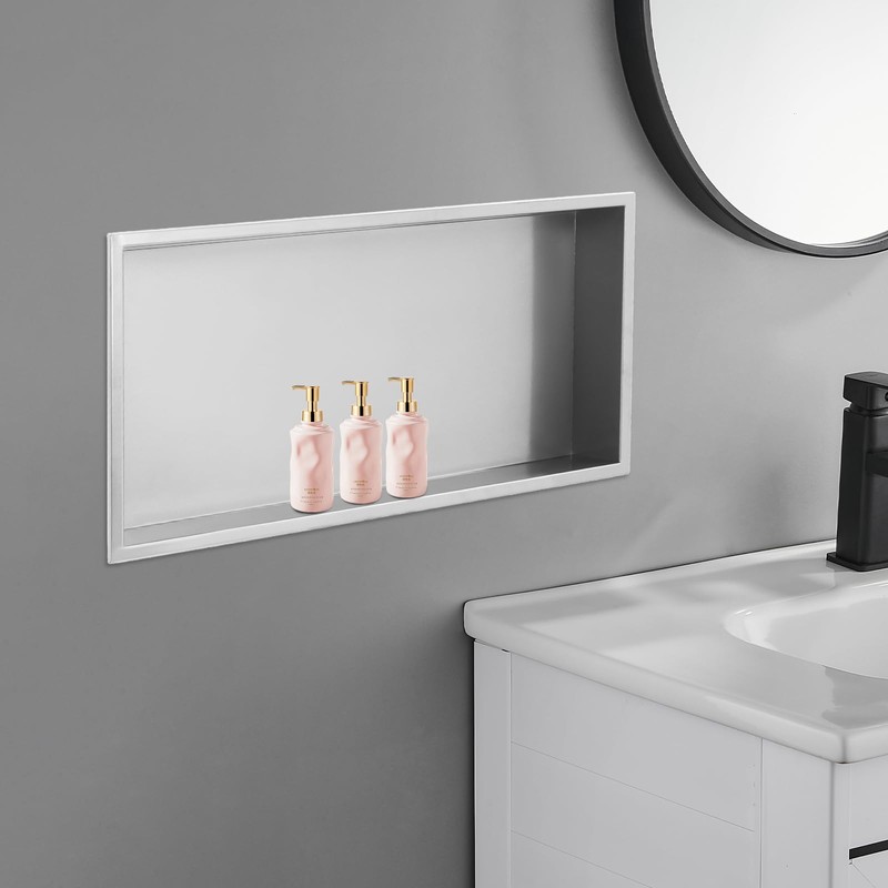 LINISHOP Bathroom Shower Shelf Stainless Steel Shower Storage Shelf Wall-Mounted Caulk in Bathroom Shelf Organizer Rectangle Recessed Niche Storage (Silver Gray, 24" x 12")