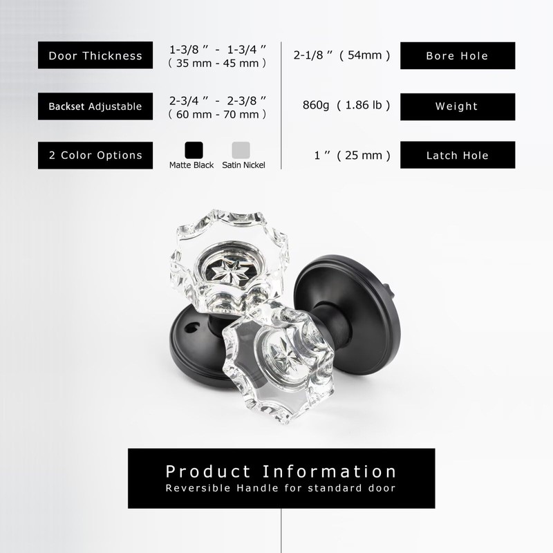 • 【 Fit Standard Door - with adjustable latch】 Linkaa black crystal knobs for french door fits standard doors 1-3/8" to 1-3/4" thick,latch backset adjusts to either 2-3/8" or 2-3/4".
