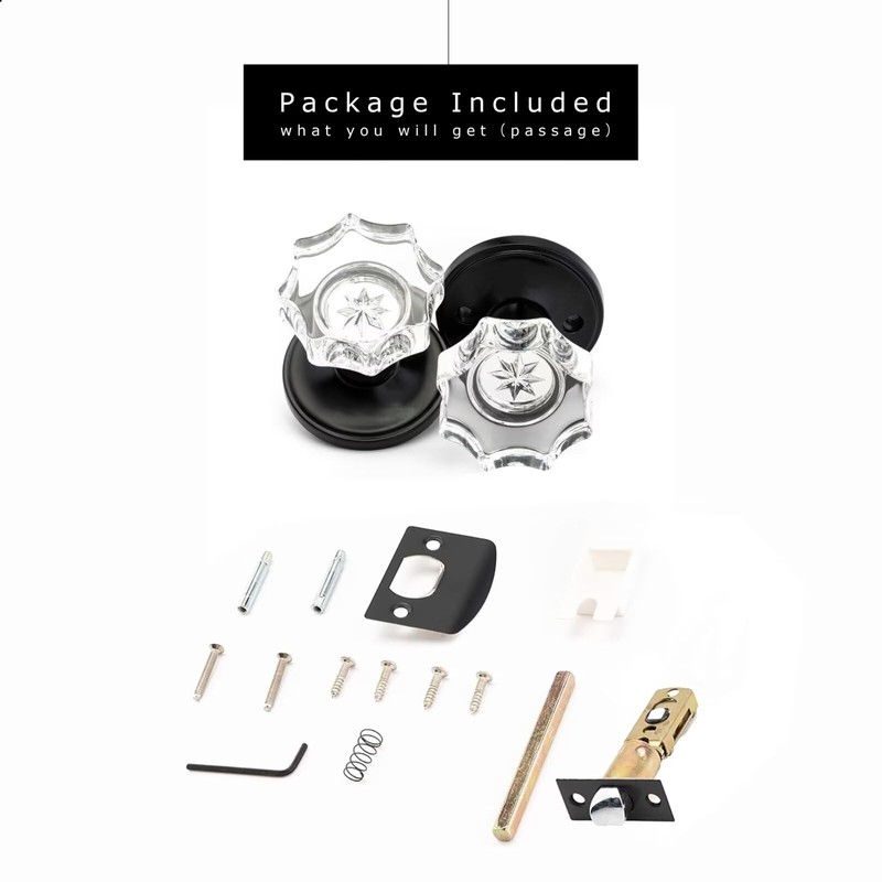 Linkaa Crystal Knobs Glass Door Knob Door Handle,Black Passage Door Handle Le...
