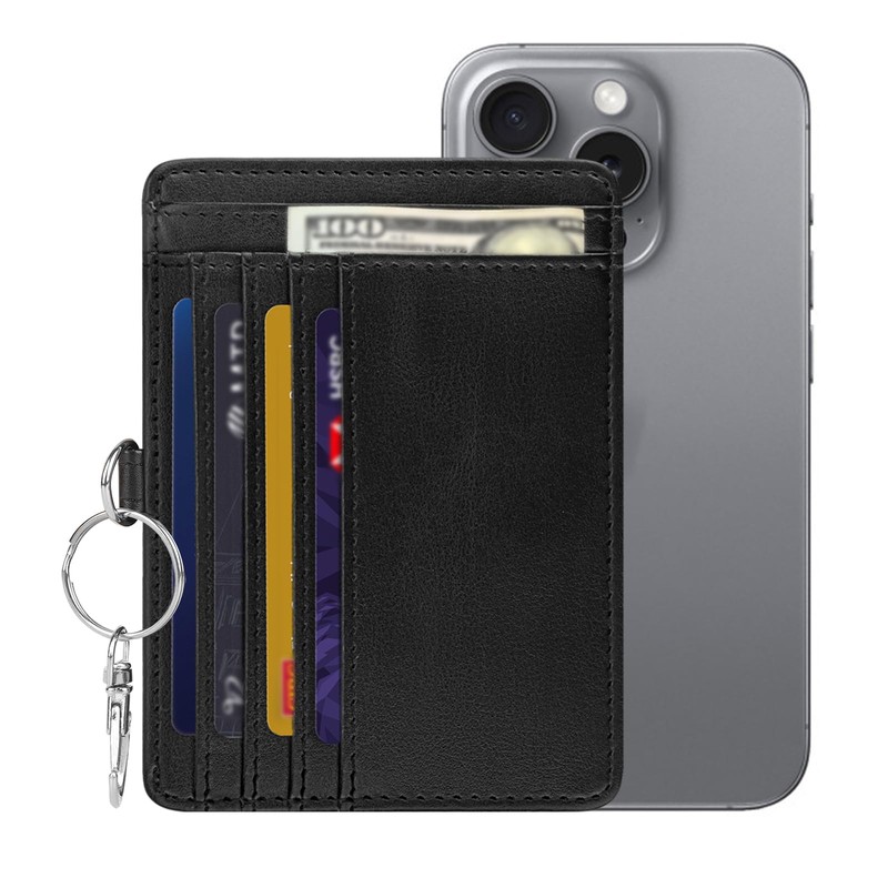 - Slim wallet case with a clear pocket can hold 4 x 3" card. Keeps content safe and visable.