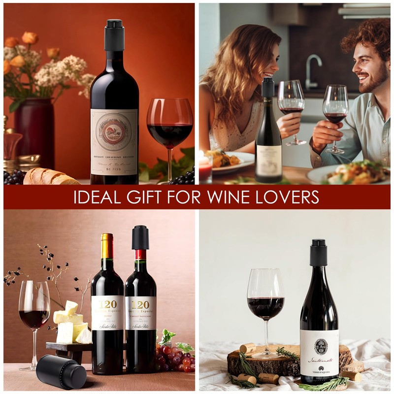 Linkidea 2 Pack Reusable Vacuum Wine Stopper Sealer, ABS Wine Preservation Stoppers for Red Champagne Bottles, Gift for Wine Lovers (Black)