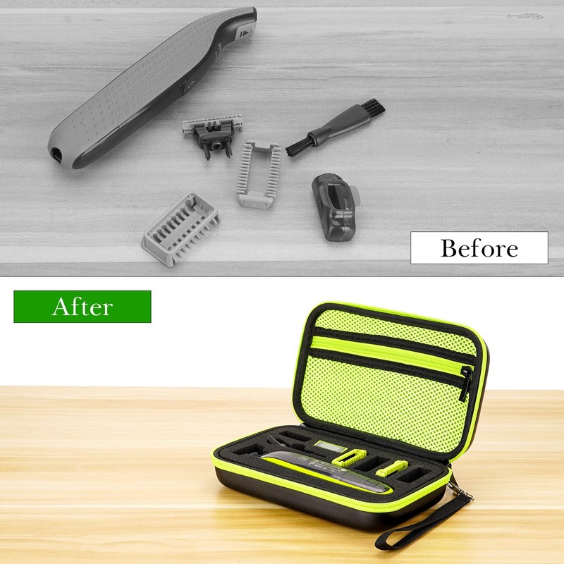 - Trimmer razor bag made of EVA, hard shell double zipper design, exterior and soft interior provide full protection against scratches, impacts, spills and dust, protecting the razor trimmer from damage.