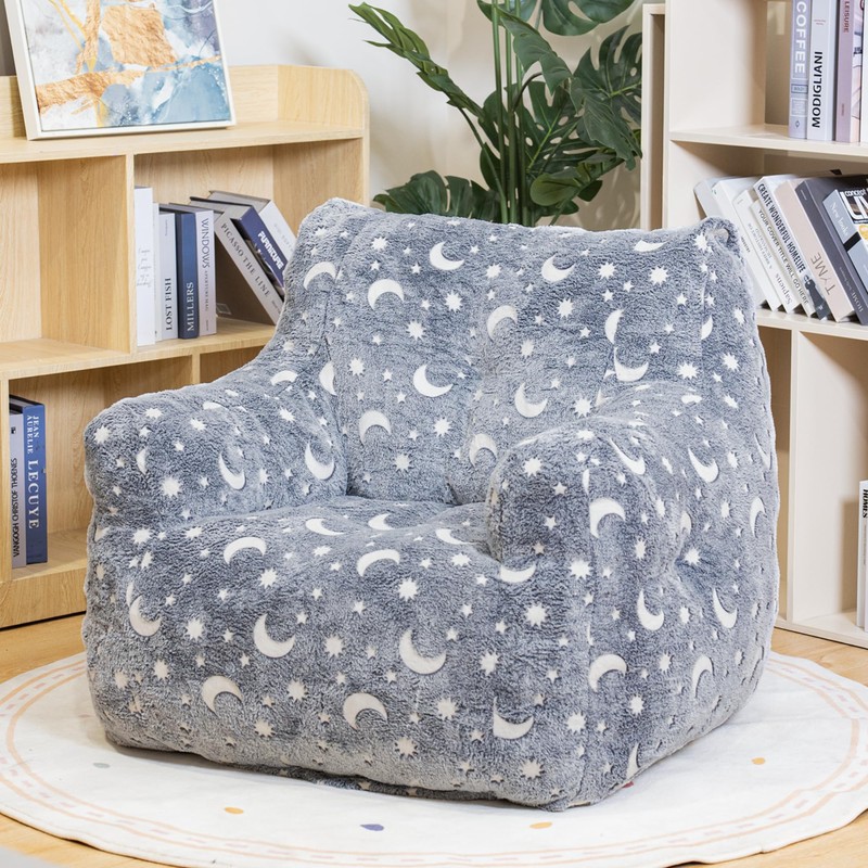 - 【GLOW AT NIGHT DESIGN】The beanbag lazy sofa with filler has a simple and elegant appearance, The Moon and Sun design on the bean bag chair will light up in the dark. It is suitable for bedrooms, living rooms, study rooms, dormitories, apartments, and other scenes. The bean bag sofa chair can be moved to your home area where you like. As the bedroom chair, living room sofa, dormitory chairs, apartment beanbags, etc.