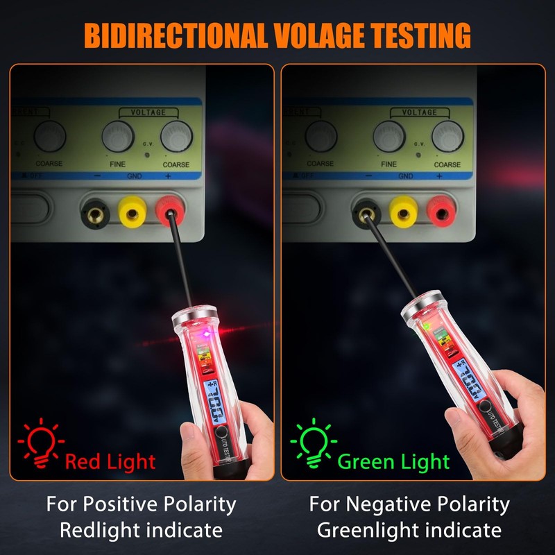 - Bidirectional Voltage & Continuity Test: Easily test both voltage and continuity with this automotive test light. It features red and green indicators to identify positive and negative poles, while alligator clips ensure secure and easy connections during testing
