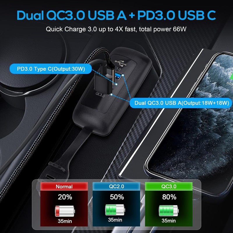 - 3 Bağlantı Noktalı Tasarım Çıkışı: Çift QC3.0 18W+18W ve PD3.0 30W bağlantı noktaları, 3 cihazı aynı anda hızlı, verimli hızlarda şarj eder