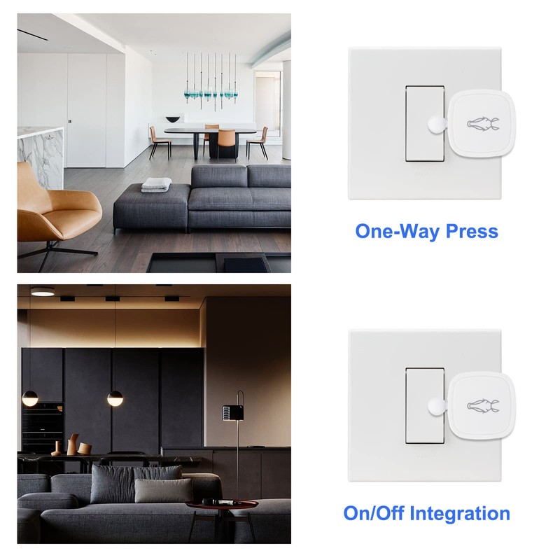 • FLEXIBLE CONNECTIVITY: Our switch robot allows bluetooth connection or connects with our gateway hub, which gives you extended range, remote access and allows you to control the smart switch from anywhere while also giving you access to other smart features such as time scheduling, and voice controls.
