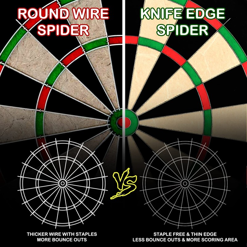 - Complete staple free bullseye helps prevent bounce-outs, making LinkVisions dartboard the ultimate choice for discerning dart enthusiasts seeking top-notch performance and enjoyment.Thin round wire and new construction of outer bull ring with only 4 staples (not 20 as in other round wire boards) helps further minimize bounce-outs and increase scoring potential.