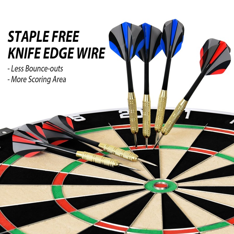 - 4 complete sets of high quality 18g steel darts with high quality shafts and flights. Dartboard mounting kits are also included. (please check the bottom corner of the box for all accessories. Our customer service team is standing by for any issues or questions.)