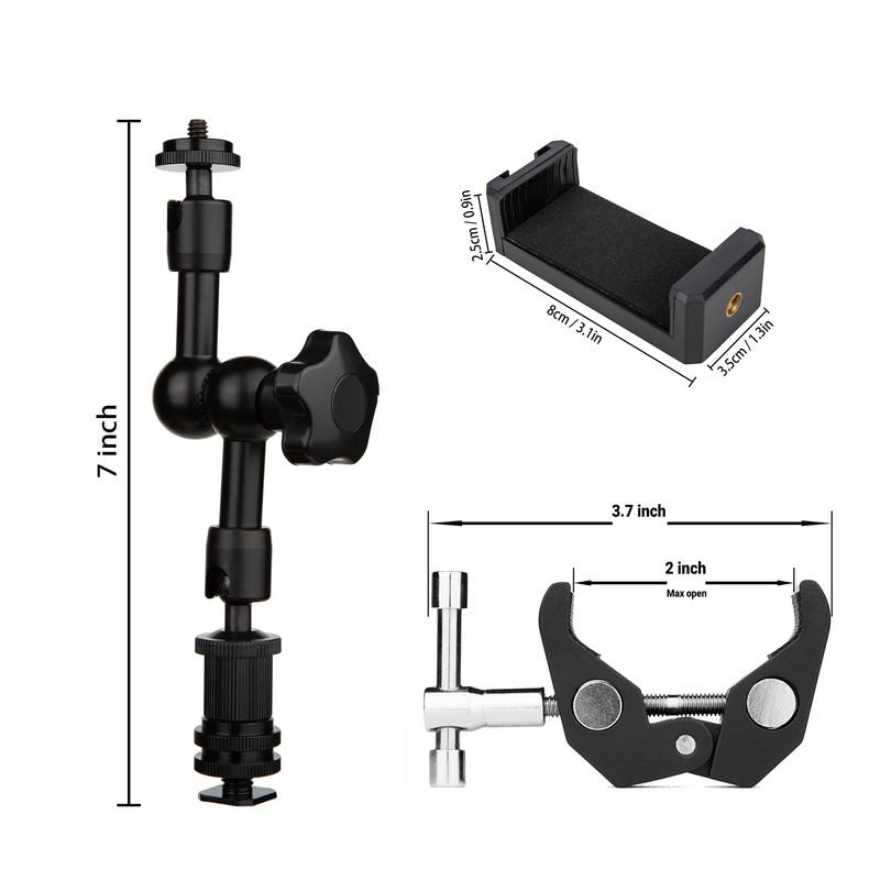 • ✅ 360° Flexible Positioning: Adjustable magic arm with ball joint locks any angle, ideal for cameras, phones & lighting gear.