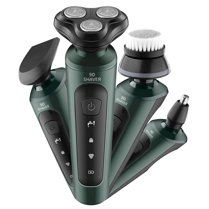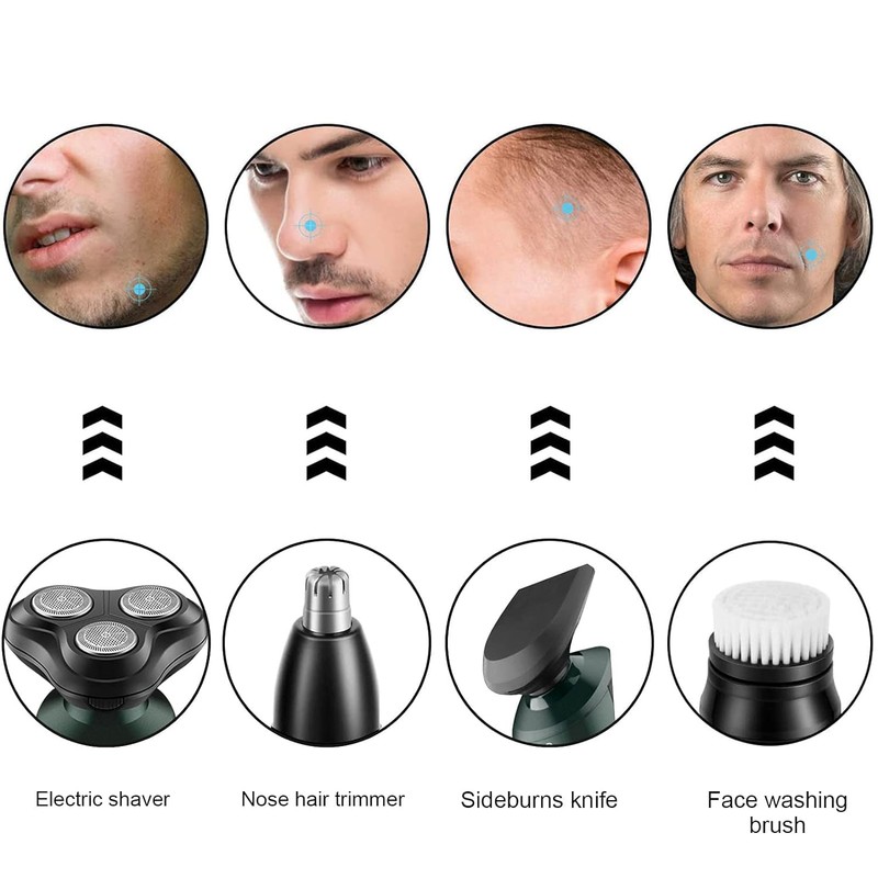 - Multifunctional Grooming Set -- 4 in 1 mens electric razor equipped 4 detachable attachments,including electric shaver head,sideburns knife head,facial cleasing brush,nose trimmer head to satisfy any of your facial and body shaving,grooming and cleansing needs,enjoy hair-free smooth skin without irritation