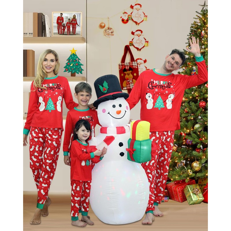 - 【Festive Holiday Inspired Design】 The top of family Christmas pajamas set have a cartoon snowman and Merry Christmas printed on the chest is very suitable for the Christmas atmosphere, and a round neck for easy dress on / off. Your matching Christmas family pajamas with elastic waist and pretty snowman pattern has strongly Christmas atmosphere and it is very suitable for whole family to wearing on Christmas