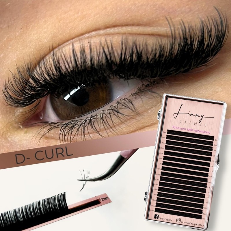 LINNY LASHES Eyelash Extension, D Curl, 16 Rows, Thickness 0.07 0.05 0.03, Length 8-15 mm, Mix Box, Lash Extensions (D-Curl 0.03, 11 mm)