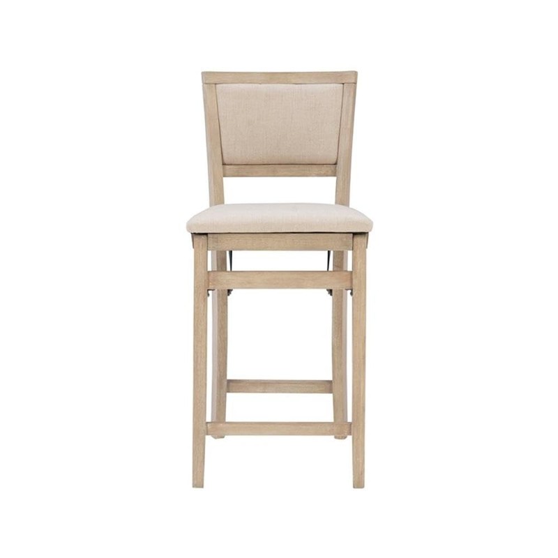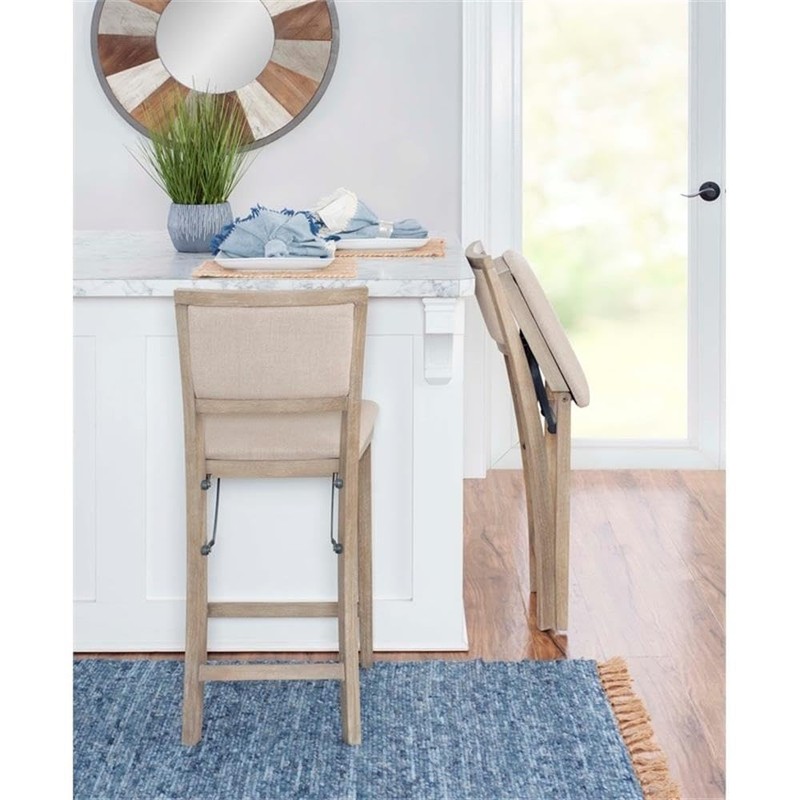 Linon Keira Folding Counter Stool Fabric Padded Back & Seat in Graywash Wood