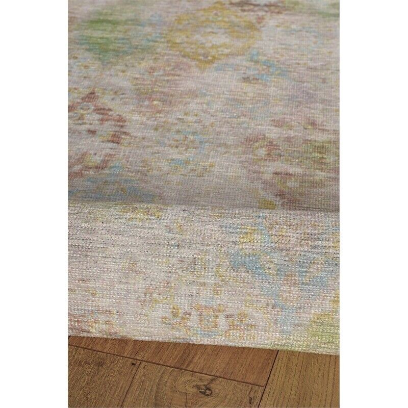 These rugs are a perfect mix of modern and traditional with time honored Oushak designs that go back for centuries in a modern upbeat color palette. The rugs feature a flat pile made of polyeter chenille for a soft hand perfectly accented with slight distressing. A secondary cotton backing provides additional weight to the rug to ensure it lays flat on you floors and is finished with a short fringe on the ends.