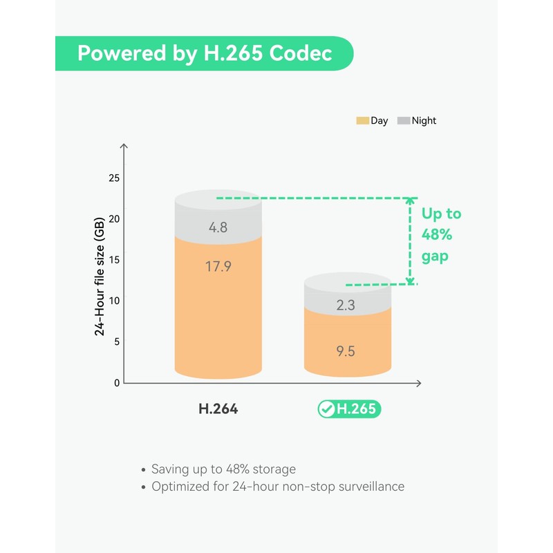 • 6MP H.265 Codec CAMERA - Superior image quality, up to 6MP (3072x2048) resolution; H.265 video compression format, Store more information with fewer storage space used.