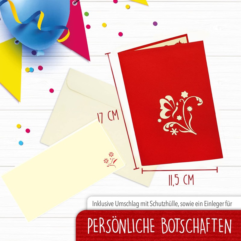 - 🎁 The ideal gift idea: you will receive a 11.5 x 21 cm 3D pop-up card with insert for your personal message, a matching envelope and a protective cover