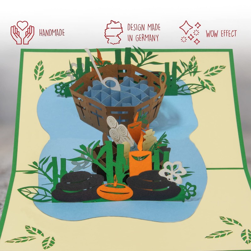LINPOPUP, N35 Pop Up Card Wellness, Wellness Voucher, 3D Pop Up Card, Birthday, Greeting Card, Folding Card, Sauna, Massage, Wellness Card
