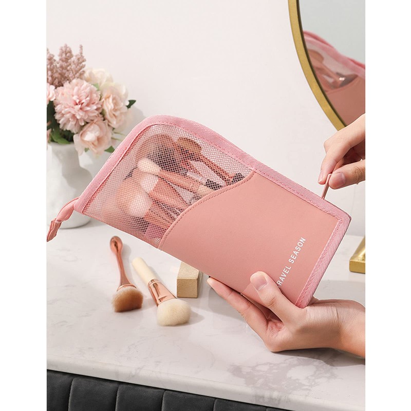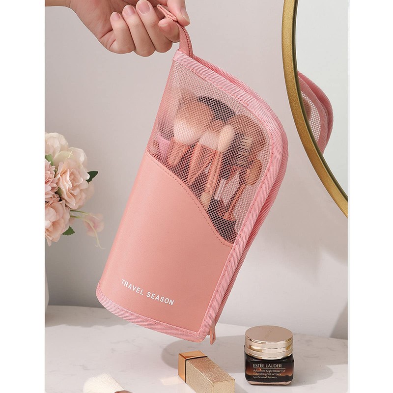Linsiter - Bolsa organizadora de brochas de maquillaje, portátil de alta capacidad, soporte para brochas de maquillaje, Rosado