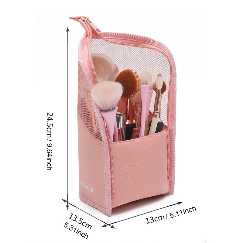 - Bolsa grande para brochas de maquillaje: este soporte para brochas de maquillaje puede contener de 15 a 20 pinceles cuando está de pie o cerrado. La longitud del cepillo para polvo de maquillaje no es superior a 20 cm