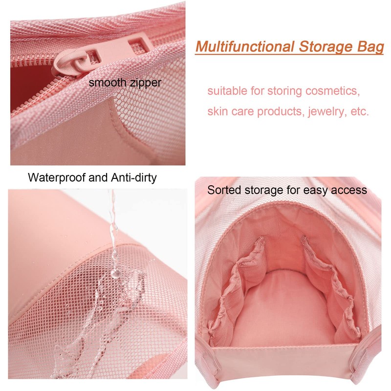 - Portátil y ligero: la bolsa para brochas de maquillaje es ligera, compacta y espaciosa. Se puede colocar en la bolsa o bolsa de lona. Tiene 6 ranuras de banda elástica para un efecto de fijación. Reduce el desorden y ahorra espacio