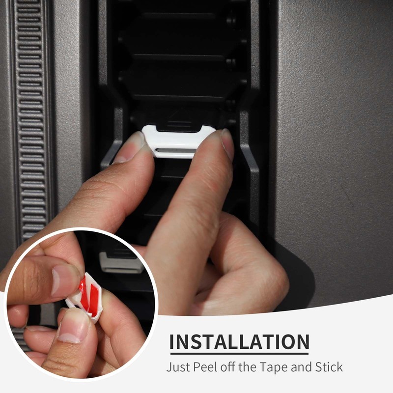 - 🚘Easy to Install: Double-sided tape is pre-installed. 1.Clean the surface area and wipe the water. 2.Peel the backing on the double-sided tape. 3.Press down on the product for better adhesion.