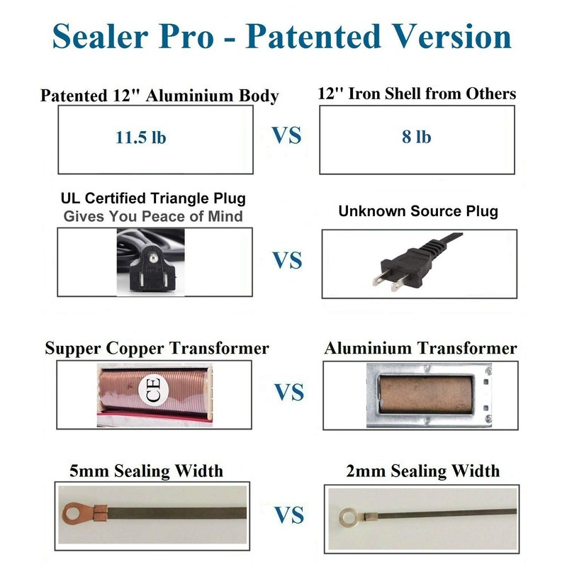 - Purer, Stronger, Longer Lasting Copper Transformer - The definition of quality. The manual impulse sealer factory has been independently producing core component – copper transformer over 20 years and supplies transformers for other 80% sealer factories. It’s twice bigger than any others’ 12inch substitutes. Pure copper coil, Reduces heat and work loss, Ensures double longer working life