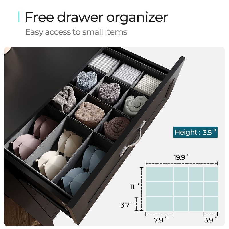 - Space Saver Extraordinaire: Picture this: 5 drawers that can swallow up all those clothes, cozy blankets, and more, measuring 20.7” L x 13” W x 4.7” H. It's like a TARDIS for your stuff. Plus, we've amped up the sturdiness with some corner blocks – because flimsy furniture? Ain't nobody got time for that.