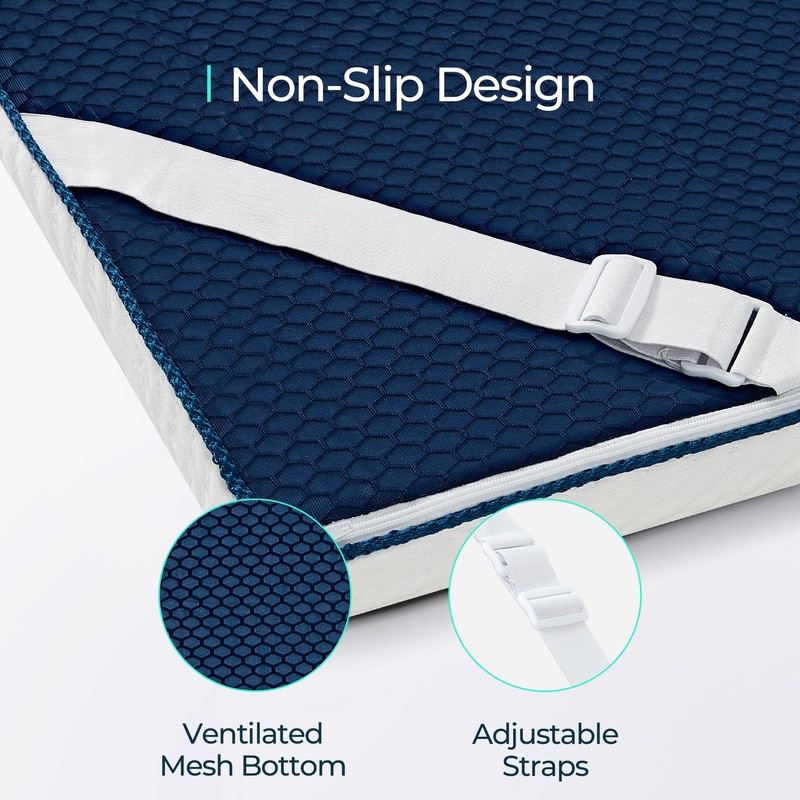 - No-Skidding Design: The elastic straps on 4 corners helps to keep the king mattress topper in place so that you don’t have to change the position of it. Mesh bottom promotes air flow to ensure your sleep environment is cool and comfy.