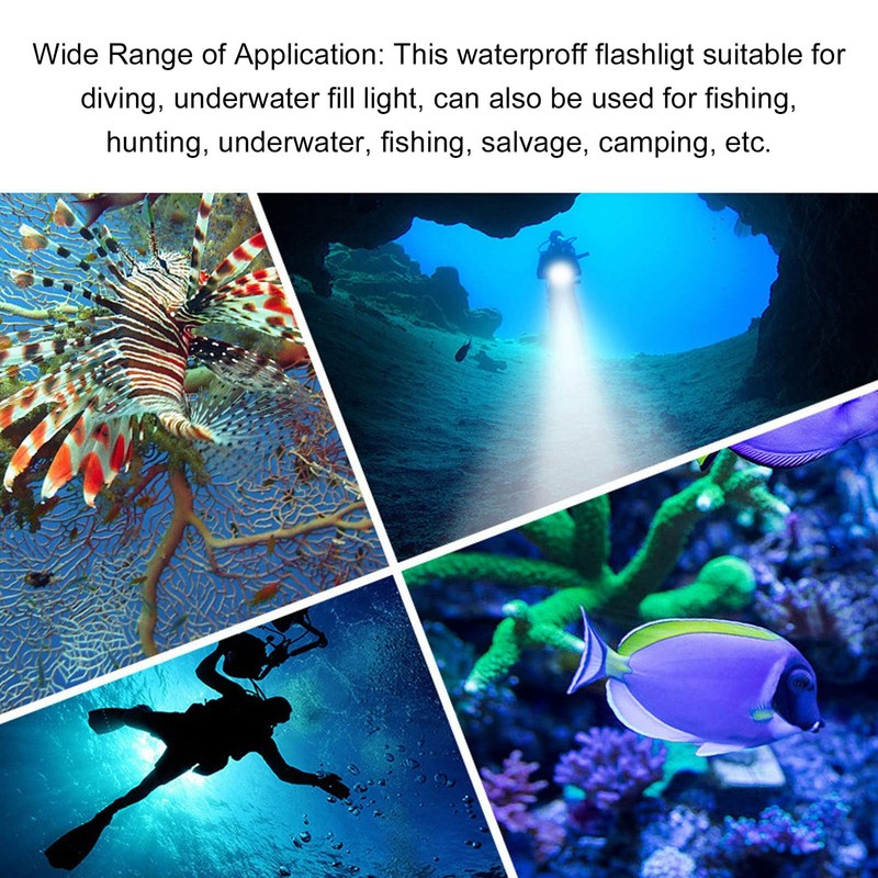 - [Brillo infinitamente regulable]: ajuste fácilmente el brillo de esta linterna de buceo de bajo a alto, atendiendo a diferentes necesidades de iluminación para diversas escenas submarinas.